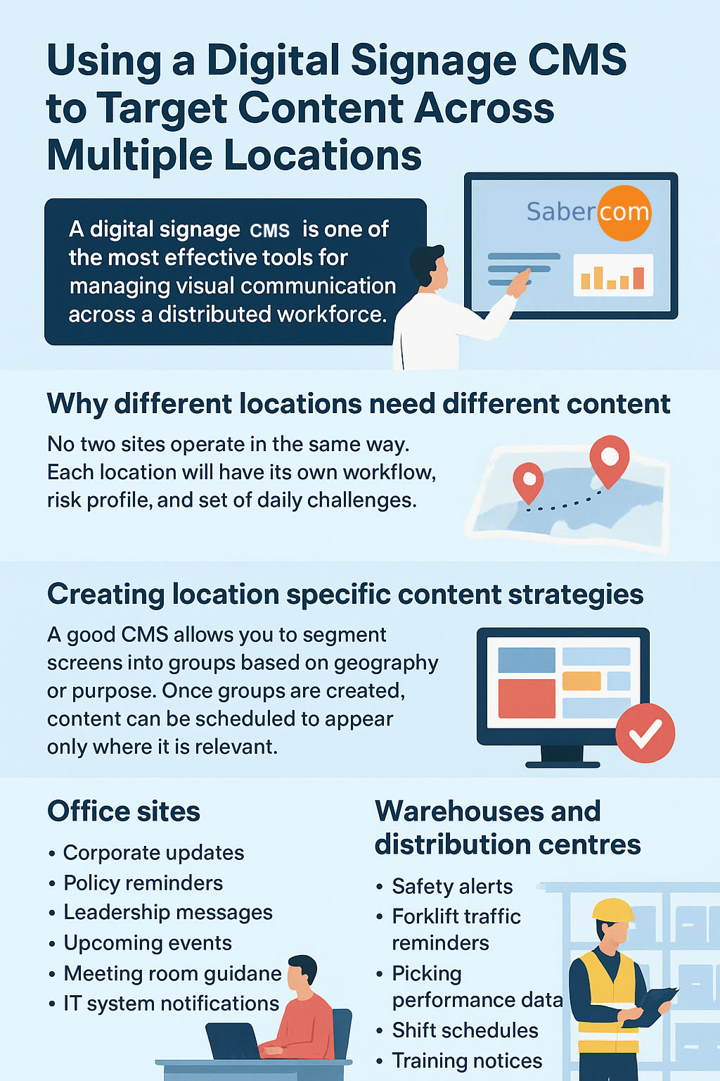 By combining location-based targeting, scheduling, and day parting, you can build a communication system that delivers clear and consistent information, supports staff, strengthens safety behaviour, and improves overall engagement.